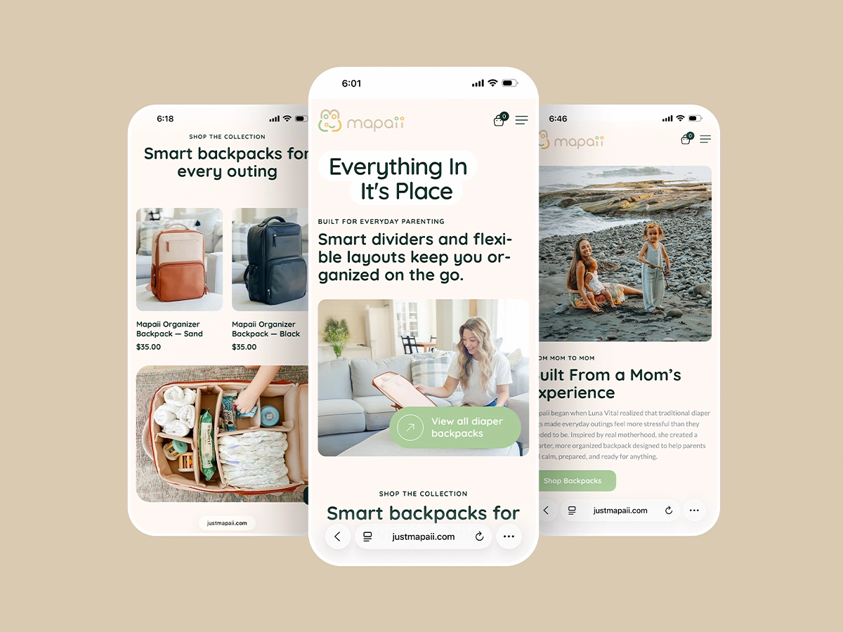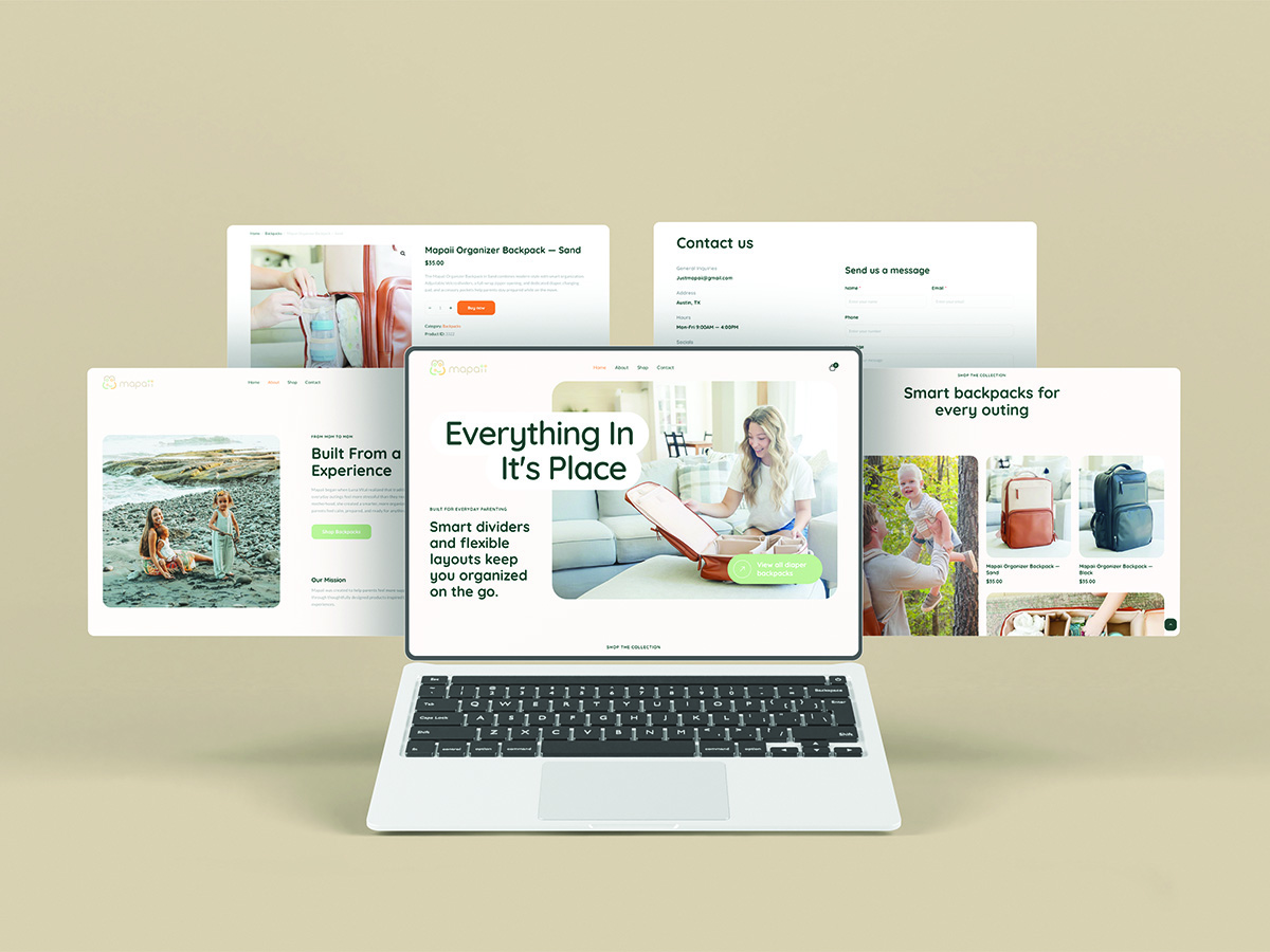 Innovate Haus stepped in to reposition Mapaii as a direct-to-consumer brand. We designed and developed a modern eCommerce website with WordPress, Elementor, and WooCommerce, giving the company ownership of its digital storefront. At the same time, we launched targeted social media campaigns to reach parents, highlighting the product’s unique features. We also built out an SEO strategy to rank for relevant parenting and baby gear searches, while creating original photography to strengthen both website visuals and ad performance.